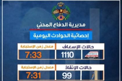 حصاد الدفاع المدني في 24 ساعة: استجابة سريعة لأكثر من ألف حالة طارئة.