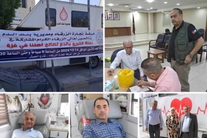 تجارة الزرقاء تنظم حملة تبرع بالدم لصالح الأهل في غزة
