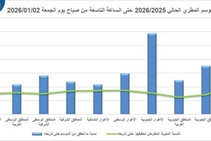 المياه : وصل الهطول المطري 90% من نسبة المعدل السنوي العام