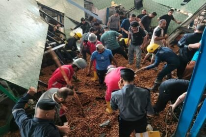 إنقاذ 4 عمال طمرتهم أطنان من التمور في العراق (صور)
