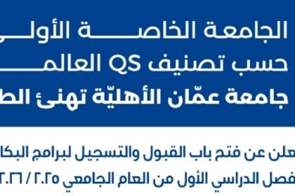عمان الأهلية تعلن عن فتح باب القبول والتسجيل لبرامج البكالوريوس والماجستير للفصل الدراسي الأول 2025 – 2026