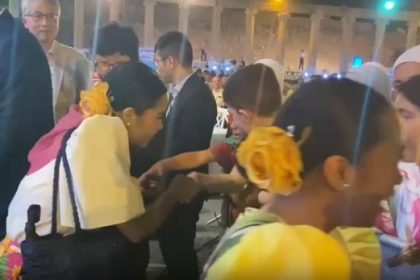 أطفال يسلّمون على الفرقة الكورية في مشهدٍ مفعم بالبراءة والمحب .. جرش39
