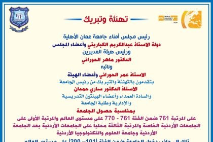 وكالة تليسكوب الاخبارية حققت جامعة عمان الأهلية تقدماً لافتاً عن السنوات السابقة…