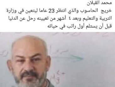 الأردن.. وفاة معلم اردني بعد تعيينه في التربية دون صرف راتبه