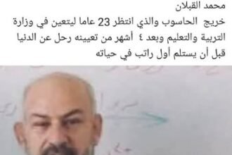 الأردن.. وفاة معلم اردني بعد تعيينه في التربية دون صرف راتبه