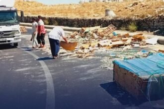 سقوط حمولة شاحنة يتسبب بأزمة خانقة على طريق المطار
