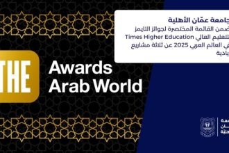 عمّان الأهلية ضمن القائمة المختصرة لجوائز التايمزعربيا 2025 عن ثلاثة مشاريع ريادية