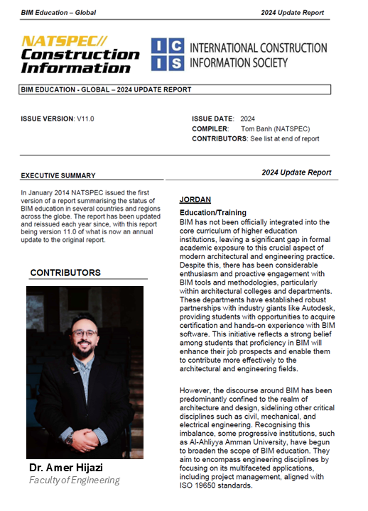 هذا التقرير. ويعزز هذا الإنجاز مكانة الأردن وجامعة عمان الأهلية كمساهم رئيسي في مجال نمذجة معلومات البناء (BIM) على الصعيد الإقليمي، ويضع الجامعة كمركز