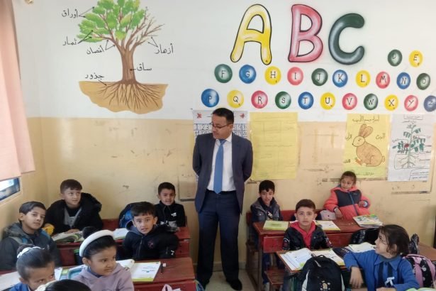 وتفقد المساعيد الغرف الصفية والتقى مع الطلاب واستمع الى ملاحظاتهم واطلع على مستوى تحصيلهم بالقراءة والكتابة، وإطمئن على تطبيق إجراءات السلامة العامة.
