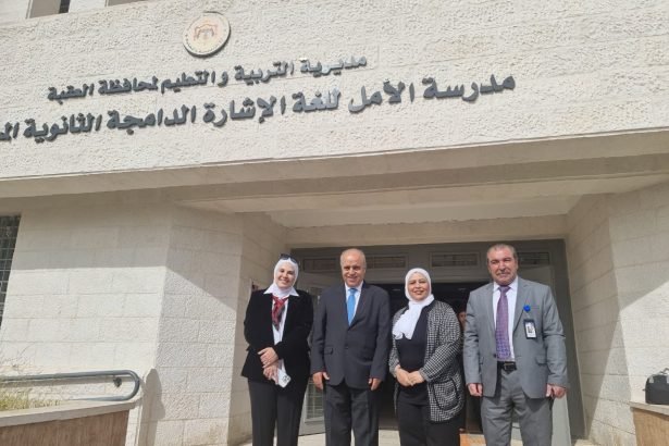 وخلال زيارته اليوم الخميس إلى مدرسة الأمل للصم في محافظة العقبة، برفقة أمين عام الوزارة للشؤون الإدارية والمالية، السيدة سحر شخاترة، أوضح الدكتور محافظة أن التعليم الدامج يُعدّ ركيزة أساسية في النظام التعليمي الحديث. وأشار إلى أن الوزارة تُولي هذا النهج اهتمامًا كبيرًا، باعتباره أداة لتحقيق العدالة التعليمية، وتعزيز فرص الطلبة ذوي الإعاقة في الانخراط الفعّال داخل المجتمع.