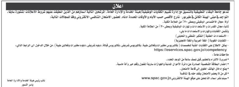 دعت مؤسسات رسمية بالتنسيق مع هيئة الخدمة الإدارة العامة اليوم الأحد، مرشحين لإجراء الامتحان التنافسي .