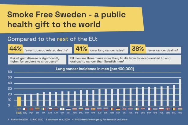 وكانت الحكومة السويدية قد أعلنت تنفيذها العديد من البرامج التثقيفية لمواطنيها، للتوعية بمخاطر التدخين، والتي تتضمن إتاحة تداول منتجات التدخين البديلة، سواء السجائر الإلكترونية أو التبغ المسخن وغيرها من منتجات حديثة أثبتت العديد من الدراسات العلمية أنها أقل خطورة مقارنة بالسجائر التقليدية، بجانب نشر المعلومات الموثوقة الخاصة بالمنتجات الحديثة، لمساعدتهم على الإقلاع.