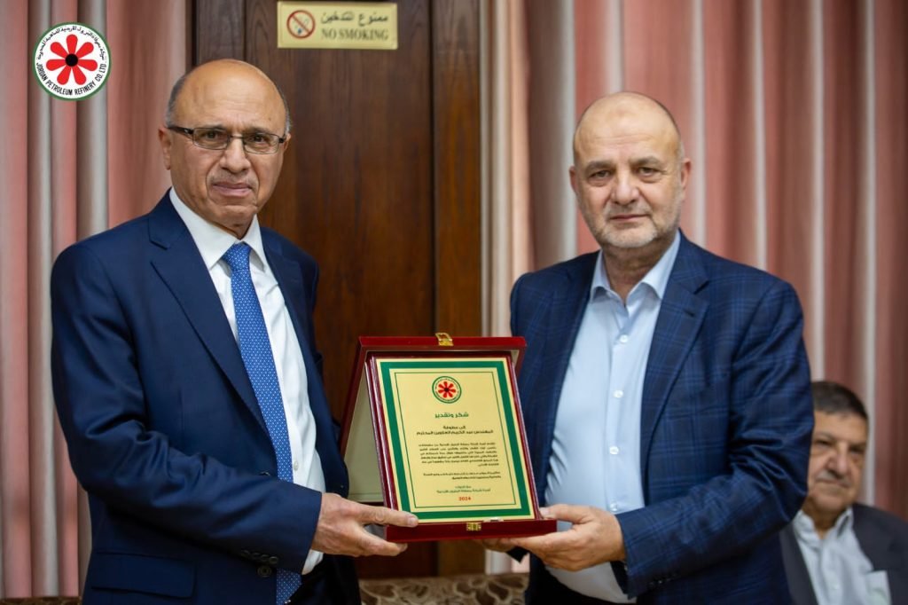 وقدم رئيس مجلس إدارة الشركة المهندس عبد الرحيم البقاعي باسمه ونيابة عن مجلس الإدارة والإدارة التنفيذية للشركة أسمى آيات الشكر والثناء والتقدير للمهندس العلاوين على العطاء الكبير والجهود المميزة التي بذلها طوال مدة خدمته في الشركة والتي كان لها الفضل الأكبر في تحقيق نجاح وازدهار هذا المرفق الاقتصادي الهام ليصبح ركناً مشهوداً في بناء الاقتصاد الأردني.