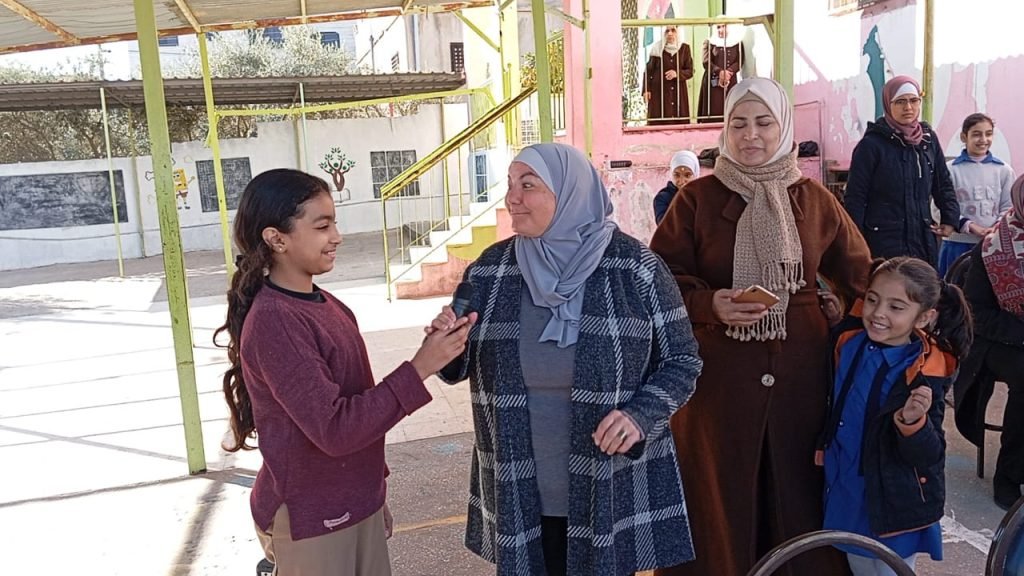 في البداية رحبت مديرة مدرسة مريم بنت عمران الأستاذة روز أبو جريس بفريق المنتدى ممثلا بمديرة البرامج والأنشطة ميرنا حتقوة ودار الحوار حول أنشطة المدرسة وعن المنتدى وأهم برامجه