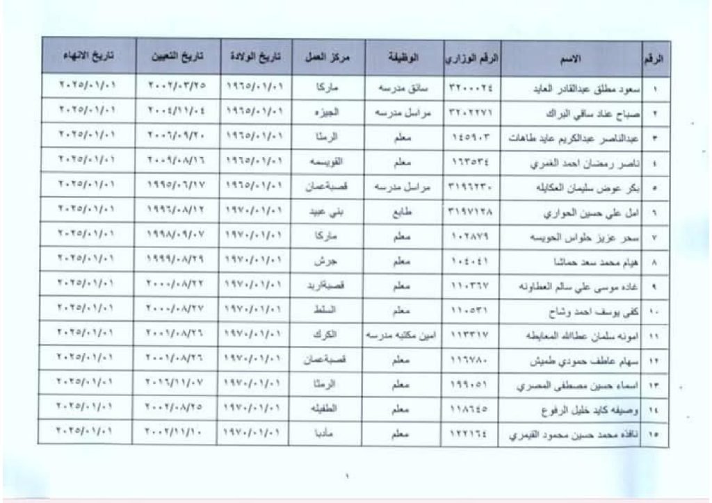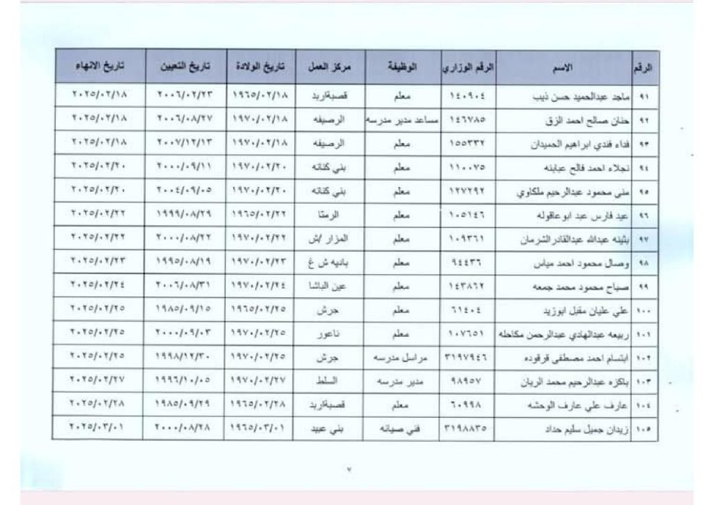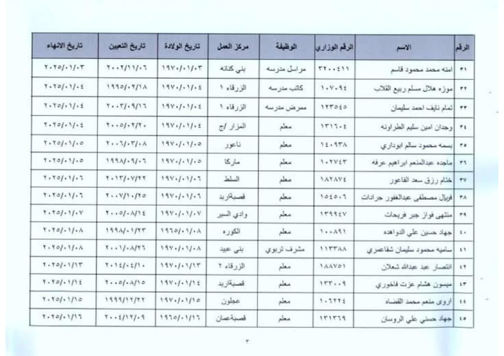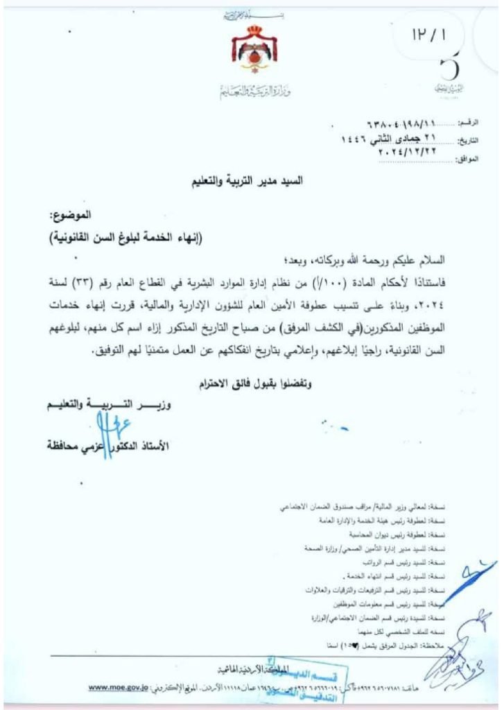 قرر وزير التربية والتعليم والتعليم العالي والبحث العلمي، الأستاذ الدكتور عزمي محافظة، إحالة عدد كبير من موظفي وزارة التربية والتعليم على التقاعد وذلك لبلوغ المحالين السن القانونية للتقاعد، فيما تقرر ترفيع آخرين وإحالتهم كذلك على التقاعد.