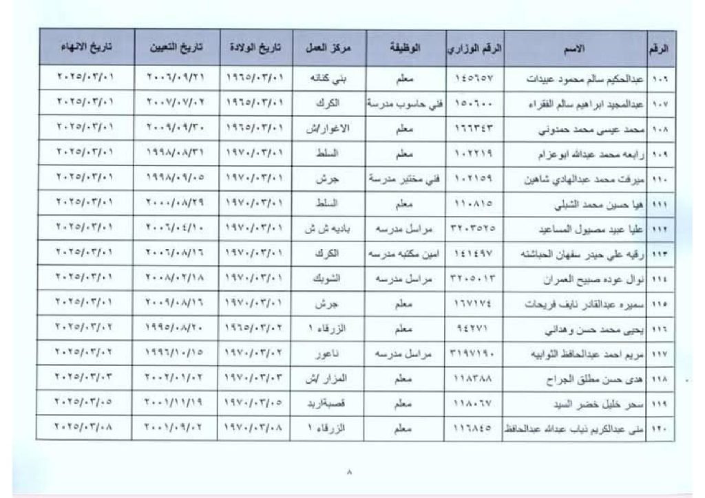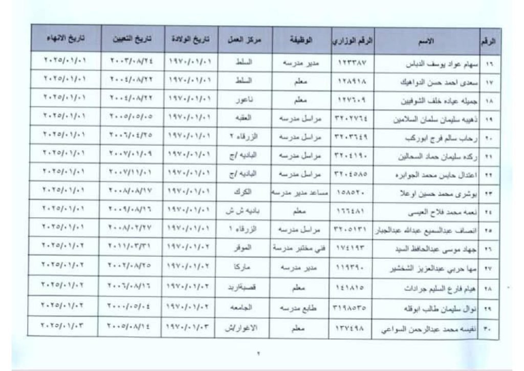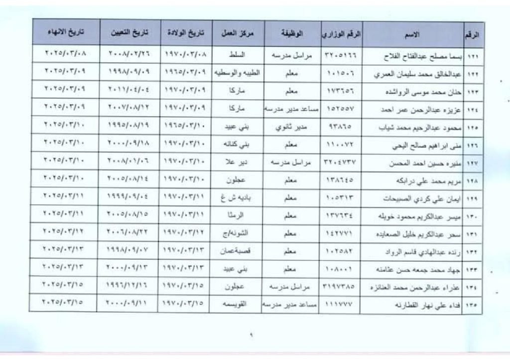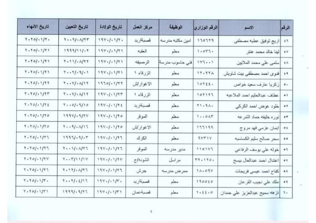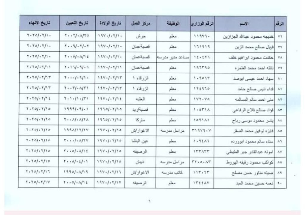 قرر وزير التربية والتعليم والتعليم العالي والبحث العلمي، الأستاذ الدكتور عزمي محافظة، إحالة عدد كبير من موظفي وزارة التربية والتعليم على التقاعد وذلك لبلوغ المحالين السن القانونية للتقاعد، فيما تقرر ترفيع آخرين وإحالتهم كذلك على التقاعد.