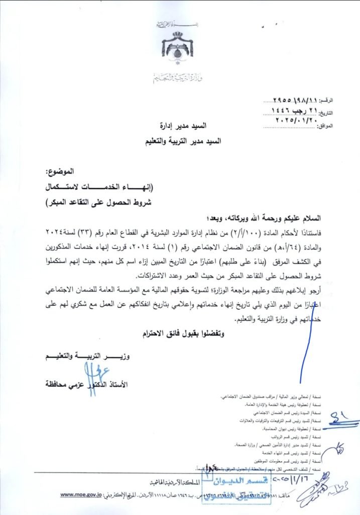 قرر وزير التربية والتعليم، الدكتور عزمي محافظة، الموافقة على إحالة معلمين وإداريين في الوزارة إلى التقاعد المبكر بناء على طلبهم.