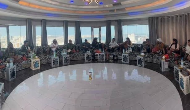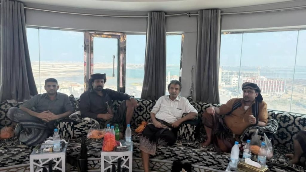 شيخ يافع الساحل الشيخ سامي ديان في ضيافة الشيخ طلال بن غازي شيخ ناصفة كلد لمناقشة ترتيب البيت اليافعي وحل قضايا القتل والمتابعة على المشاريع التنموية .