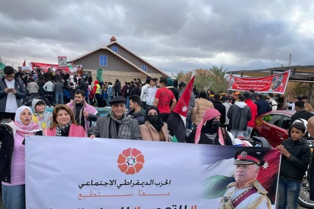 شارك الحزب الديمقراطي الاجتماعي الاردني و كوادره من فرع الزرقاء اليوم أبناء الشعب الاردني العظيم الوقفة الوطنية الأردنية رفضا لمخططات الكيان الصهيوني و تصريحات الرئيس الأمريكي تجاه الاردن لقبول التهجير القسري للشعب الفلسطيني في الضفة الفلسطينية و قطاع غزة المقاومين ، و تأكيدا على الموقف الأردني و ثوابته الوطنية الأردنية بقيادة جلالة الملك عبدالله الثاني بن الحسين حفظه الله ورعاه المعلنة بأن تبقى القضية الفلسطينية القضية المركزية للأردن وللأمة العربية وأن الاردن هو الاردن وفلسطين هي فلسطين توأمين سياميين منفصلين ، داعمين الحقوق المشروعة في قيام الدولة الفلسطينية المستقلة وعاصمتها القدس الشرقية ، معاهدين الاردن بأن يظل وطنا عزيزاً كريما آمنا مطمئنا مستقرا مستقلا موحدا صامدا فوق ترابه الوطني الاردني المقدس ، معتزا بعناوينه الراسخة بهوية وطنية متجذرة و جبهة داخلية متماسكة و وحدة وطنية اردنية خالدة.