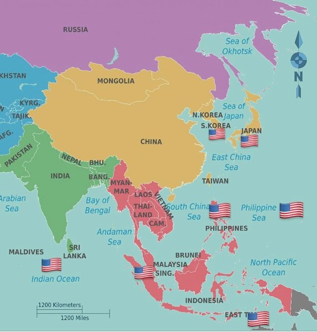 (الولايات المتحدة) لمنع تصاعد قوة القطب الصاعد (الصين)، حيث تعتبر الصين سيطرتها خطوة ذات أهمية لفرض قوتها في العالم، وتراجع الدول الأخرى عن علاقتها بالولايات المتحدة الأمريكية.