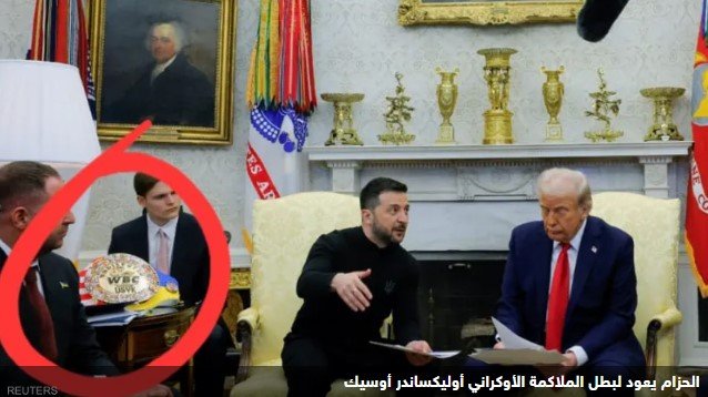 قالت صحيفة “ذا صن” البريطانية” إن الرئيس الأوكراني فولوديمير زيلينسكي قدم هدية خاصة للرئيس الأمريكي دونالد ترامب خلال زيارته إلى البيت الأبيض الجمعة، تمثلت في حزام بطل الوزن الثقيل العالمي الذي فاز به بطل الملاكمة الأوكراني أوليكساندر أوسيك.