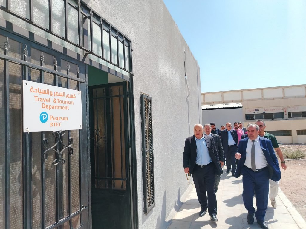 وخلال الزيارة، قام الوفد بجولة في مرافق المدرسة، حيث اطّلعوا على برامج التعليم المهني ضمن نظام BTEC، الذي تشرف عليه شركة Pearson، والذي يشمل تخصصات متعددة مثل البناء والإنشاء، والسفر والسياحة، والفندقة. وقدم الدكتور الحجاج شرحًا عن آلية تنفيذ البرنامج، موضحًا أنه يركز على تنمية المهارات العملية للطلبة من خلال التدريب الميداني والمشاريع التطبيقية، مما يسهم في إعدادهم لسوق العمل بمهارات متقدمة.