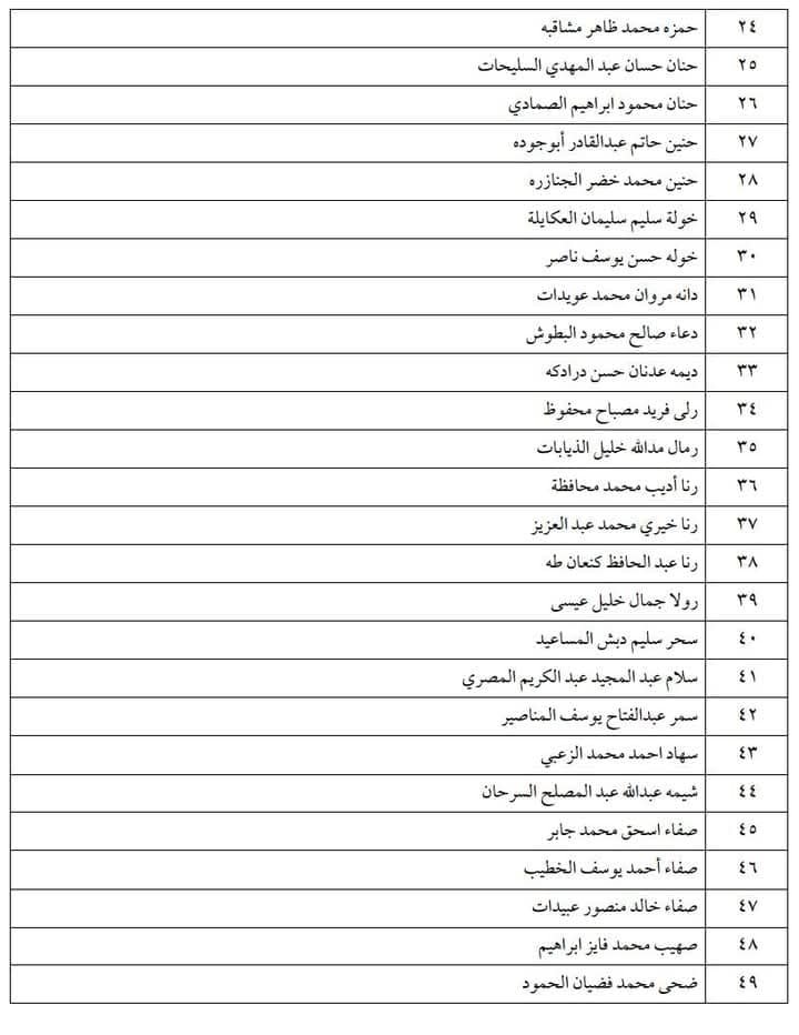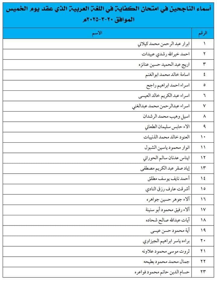 أسماء الناجحين في امتحان الكفاية في اللغة العربية الذي عقد يوم الخميس الموافق ٢٠-٣-٢٠٢٥م