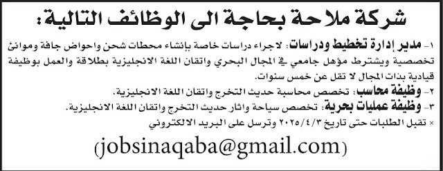 فرص عمل وظائف ادارية للعمل لدى شركة ملاحة اردنية Last updated: مارس 28, 2025 11:08 ص dawoud Share 0 Min Read SHARE وكالة تليسكوب الاخبارية You Might Also Like مطلوب للعمل على حساب التعليم الاضافي وظائف شاغرة في روضة ومدارس دولية بالعاصمة عمان مطلوب مدراء ومديرات معلمين ومعلمات ومشرفين وارشاد ومنسقة اعمال وطبيب وسائقين ومرافقات باص وعمال وعاملات نظافة وظائف حكومية متنوعة شاغرة .. تفاصيل وظائف حكومية شاغرة .. تفاصيل Sign Up For Daily NewsletterBe keep up! Get the latest breaking news delivered straight to your inbox.[mc4wp_form]By signing up, you agree to our Terms of Use and acknowledge the data practices in our Privacy Policy. You may unsubscribe at any time. Share This Article Facebook Twitter Whatsapp Whatsapp Telegram Email Copy Link Print Share Previous Article تعلن المجموعة الأردنية للمناطق الحرة والمناطق والتنموية عن توفر شواغر وظيفية لذوي الخبرة والكفاءة العالية Next Article دعوة مرشحين لاجراء الامتحانات التنافسية لغايات التعيين في عدد من مؤسسات الحكومية