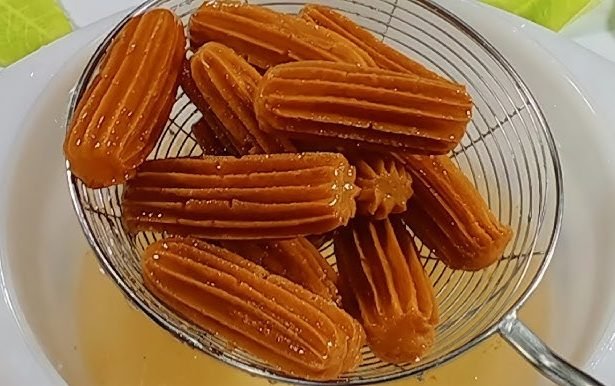 - وبمجرد أن يصبح بلح الشام ذهبي اللون، ارفعيه من الزيت وصفيه تماما.