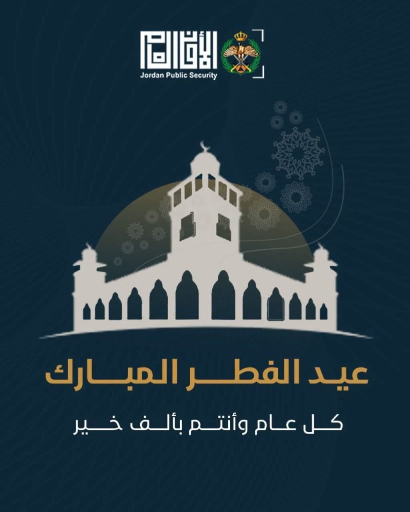 هنأت مديرية الأمن العام المواطنين بحلول عيد الفطر السعيد، ونشرت على صفحاتها جملة من الإرشادات الواجب اتباعها خلال التنزه وقضاء الاوقات خلال أيام العطلة.