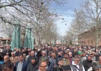 وندد المشاركون في الجنازة بما يتعرض له الشعب الفلسطيني في غزة من قتل وإبادة .
