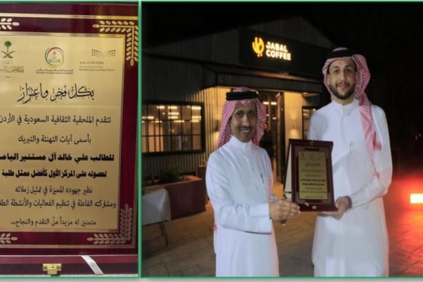 وقد تم تكريم الفائزين في هذا الحفل من قبل سعادة القائم بأعمال الملحقية الثقافية السعودية في الأردن والمشرف على أعمال الملحقية في لبنان، أ.د. محمد بن خزيم الشمري، وذلك تقديرًا لجهودهم المتميزة في تمثيل زملائهم من الطلبة السعوديين في الجامعات الأردنية، والمشاركة الفعّالة في تنظيم الفعاليات والمناسبات الثقافية.