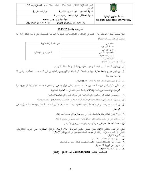 تليسكوبفرص عمل جامعة عجلون الوطنية تعلن عن رغبتها في ابتعاث عدد من حملة الماجستير في عدد من التخصصات للحصول على درجة الدكتوراه Last updated: أبريل 11, 2025 3:14 م dawoud Share 0 Min Read SHARE تعلن جامعة عجلون الوطنية عن رغبتها في ابتعاث عدد من حملة الماجستير في عدد من التخصصات You Might Also Like شغف الكتابة ما بين السلم والحرب ! جامعة أردنية تحوّل الدراسة عن بعد ‘الجسر العربي’ تزيد رحلاتها البحرية لاستيعاب المسافرين بعد إلغاء الرحلات الجوية بنك صفوة الإسلامي يفتتح فرعه في مكة مول بحلته الجديدة “ثورة معرفية بوجه أردني: الرواشدة يطلق الدورة الـ20 لمكتبة الأسرة ببوصلة تنحاز للمبدع المحلي” Sign Up For Daily NewsletterBe keep up! Get the latest breaking news delivered straight to your inbox.[mc4wp_form]By signing up, you agree to our Terms of Use and acknowledge the data practices in our Privacy Policy. You may unsubscribe at any time. Share This Article Facebook Twitter Whatsapp Whatsapp Telegram Email Copy Link Print Share Previous Article تعلن مدارس خاصة عن فتح باب التوظيف لديها في القسمين الوطني والدولي للعام الدّراسي 2025 / 2026 Next Article رياض ومدارس خاصة عن حاجتها لتعيين وظائف ادارية ومشرفين ومعلمين في مختلف التخصصات التعليمية