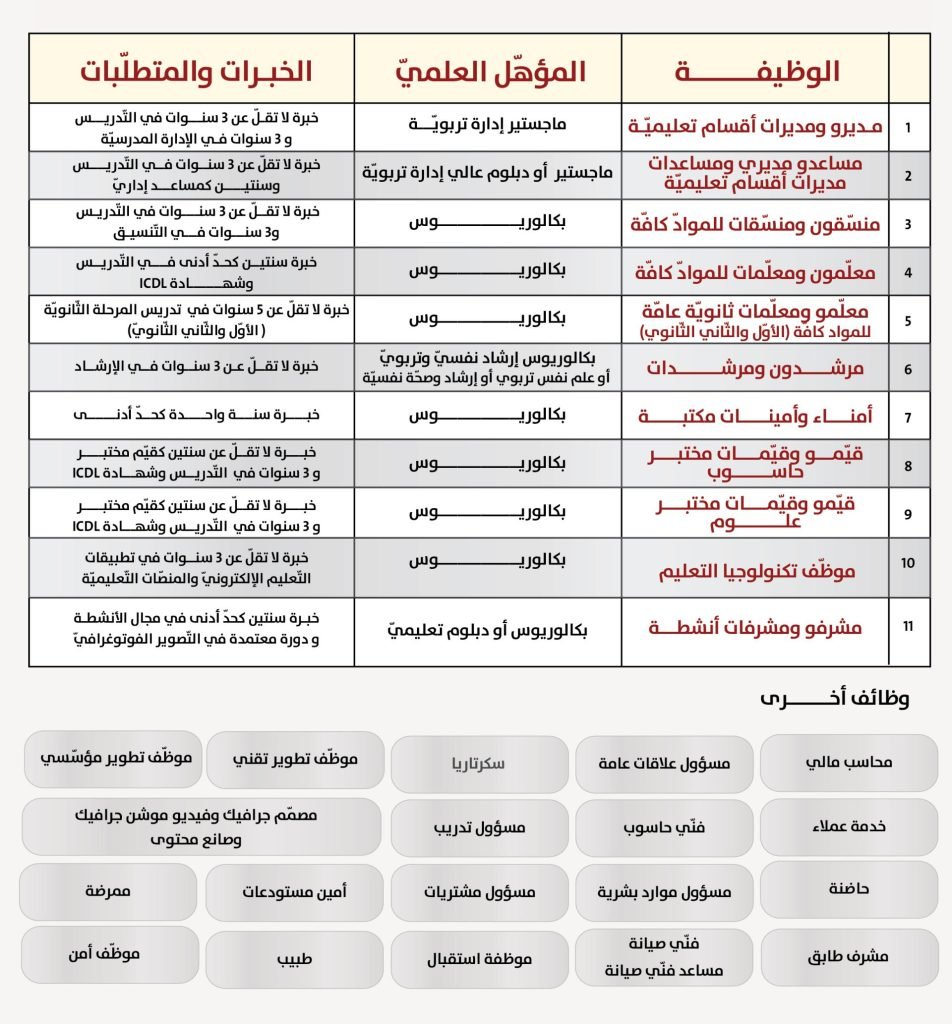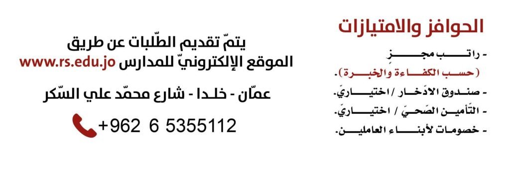 تعلن رياض ومدارس الرضوان عن حاجتها لتعيين وظائف ادارية ومشرفين ومعلمين في مختلف التخصصات التعليمية، وفقًا للشروط التالية: