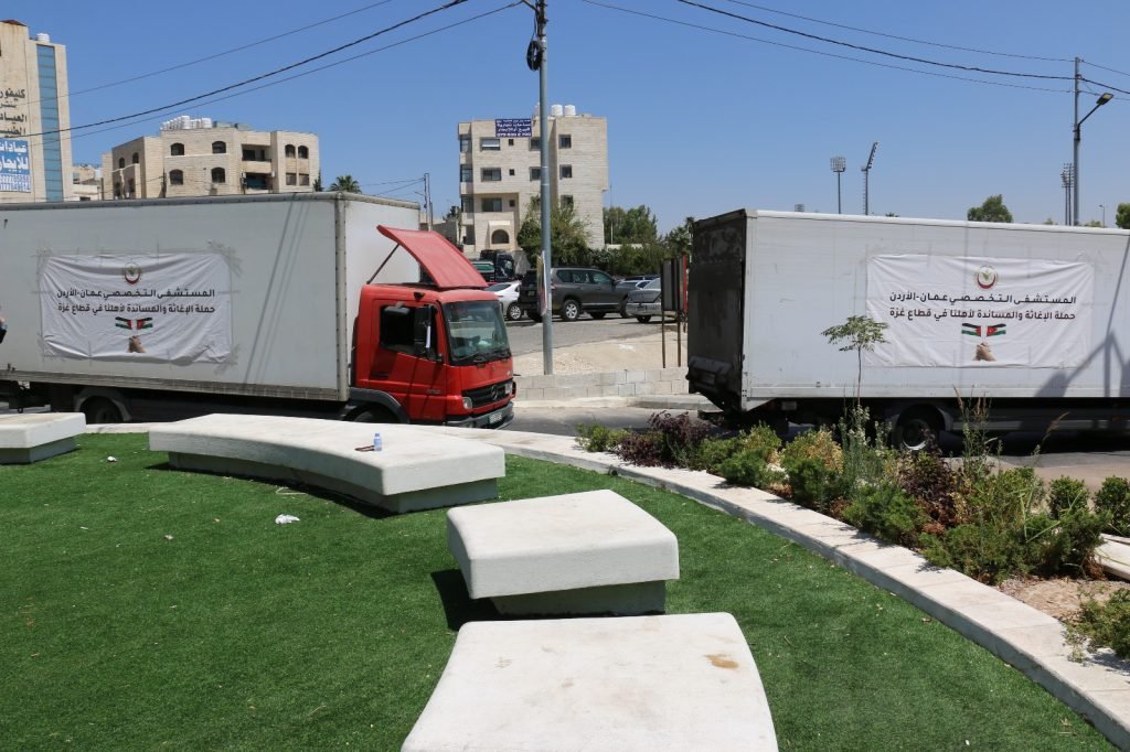 انطلقت يوم الاحد الموافق 25/8/2024 قافلة جديدة من المساعدات الطبية والإنسانية من المستشفى التخصصي إلى قطاع غزة بواسطة الهيئة الخيرية الأردنية الهاشمية لإغاثة القطاع الصحي والمواطنين في القطاع، وذلك تزامناً مع إعلان وزارة الصحة الفلسطينية في قطاع غزة السبت عن نفاذ 60% من قائمة الأدوية الأساسية و 83% من قائمة المستهلكات الطبية في مستودعاتها في ظل استمرار العدوان الإسرائيلي على القطاع وسيطرة الاحتلال على المعابر كافة واستهدافه المستمر للقطاع الصحي.