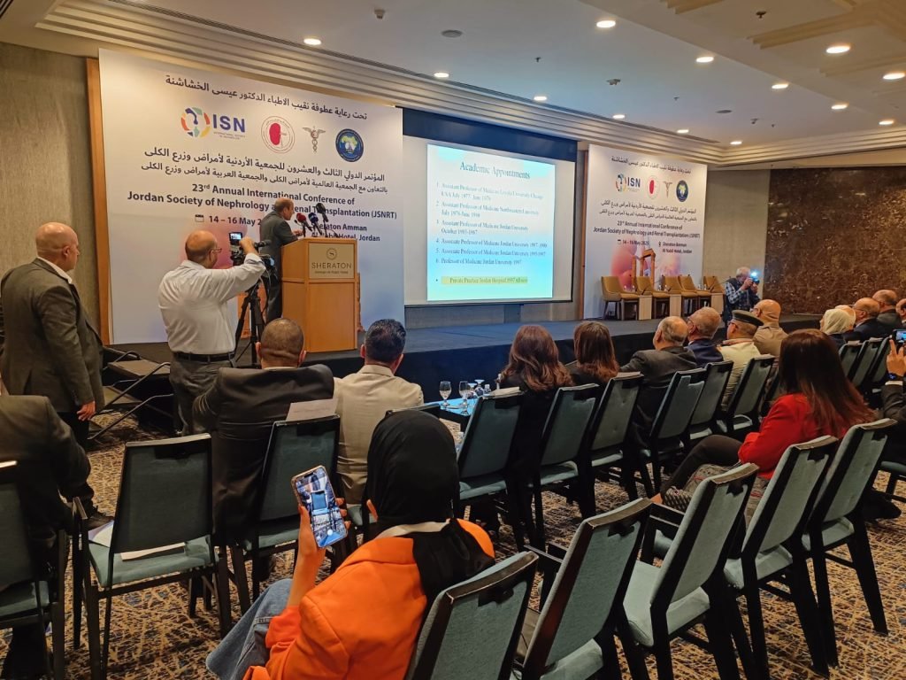 تواصل فعاليات المؤتمر الدولي الأردني الـ23 للجمعية الأردنية لأمراض وزراعة الكلى في نقابة الأطباء، بالتعاون مع الجمعية العالمية لأمراض الكلى، والجمعية العربية لأمراض وزرع الكلى.