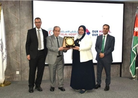 وفي ختام الفعالية، تم تكريم الأستاذ الدكتور إيمان النزلي، عميد كلية التمريض في جامعة عمان الأهلية، بدرع تقديري، تكريماً لجهود الجامعة المتميزة في دعم التمريض وتعزيز التعاون الأكاديمي والسريري مع مستشفى الاستقلال.