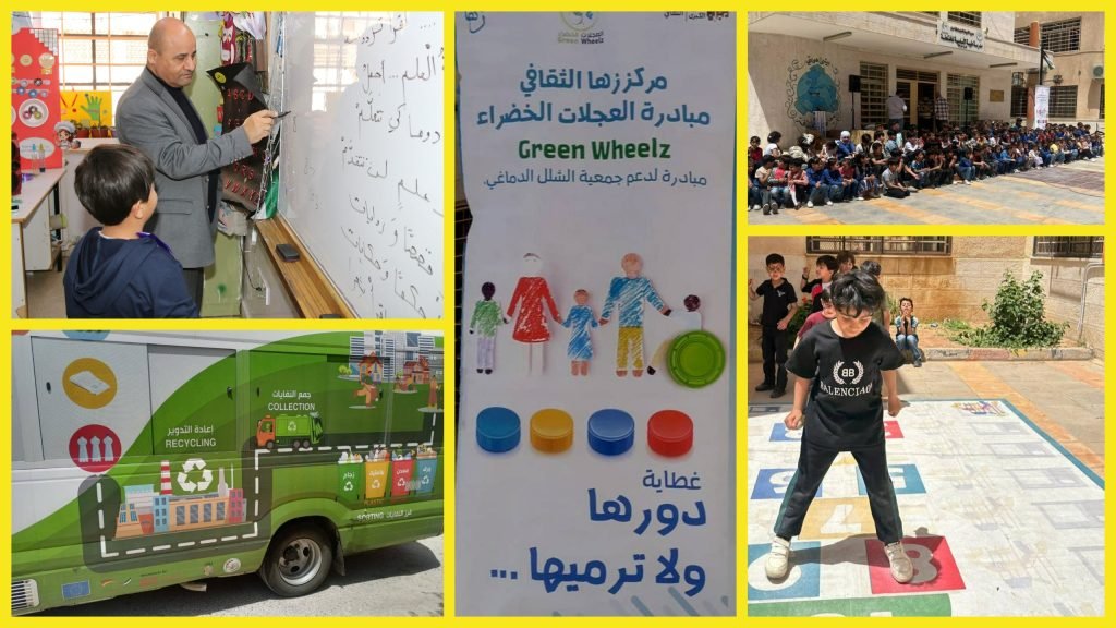 يُذكر أن مبادرة “العجلات الخضراء – Green Wheelz” تأسست عام 2014 بهدف جمع الأغطية البلاستيكية من قبل الأطفال وطلبة المدارس، ليتم إعادة تدويرها من أجل تمويل شراء الكراسي المتحركة والمعدات التعليمية للأطفال ذوي الشلل الدماغي والإعاقة، وانتقلت بعدها الى مركز زها الثقافي بهدف تعزيز أثرها وتوسيع نطاقها وضمان استدامتها من خلال شبكة فروع المركز المنتشرة في مختلف المحافظات.