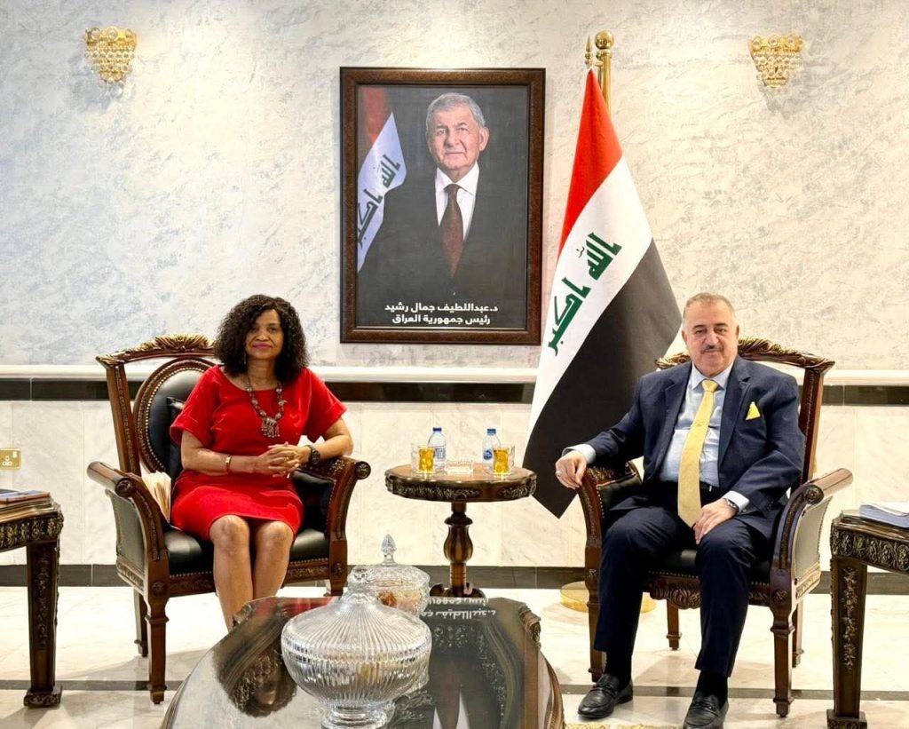 استقبل سفير جمهورية العراق لدى المملكة الأردنية الهاشمية، السيد عمر البرزنجي، سفيرة جمهورية جنوب أفريقيا غير المقيمة لدى العراق والمقيمة لدى المملكة الأردنية الهاشمية، السيدة تسيلاني موكوينا، في مكتبه بمبنى السفارة يوم الثلاثاء الموافق 2025/6/17.