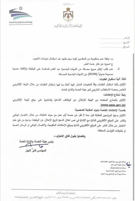 أصدرت هيئة الخدمة والإدارة العامة تعميمًا رسميًا يتضمن تحديثًا مهمًا على ضوابط نشر إعلانات التوظيف في القطاع العام، وذلك بهدف تعزيز العدالة وتوسيع قاعدة الفرص أمام المتقدمين.
