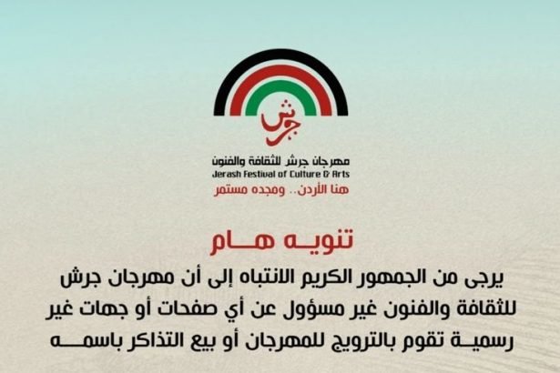 عمان- حذرت إدارة مهرجان جرش للثقافة والفنون اليوم جمهور المهرجان، من أي صفحات أو الجهات غير رسمية تقوم بالترويج للمهرجان أو بيع التذاكر باسمه.