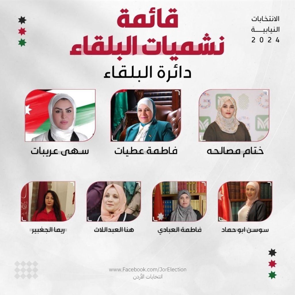 يذكر بان قائمة “نشميات البلقاء تضم فقط العنصر النسائي لخوض الانتخابات النيابية المقبلة عن المحافظة.