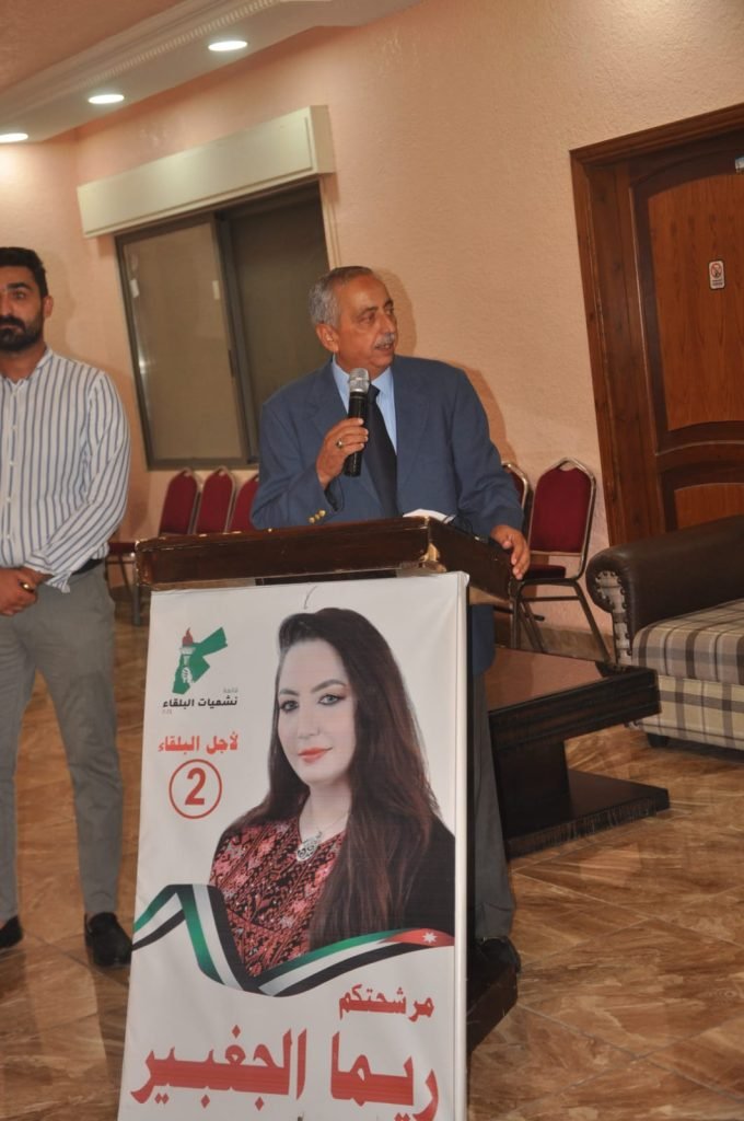 من جانبها شكرت المرشحه ريما الجغبير هذه الجموع الكبيرة التي جاءت ولبت الدعوة واعلنت دعمها ومؤازرتها لها، واعلنت دعمها للقائمة النسائية التي لاقت رضى وقبول المجتمع السلطي والبلقاوي بشكل كبير