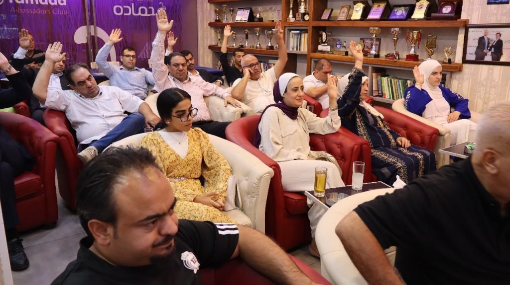 رائد حمادة نائبا للرئيس، حمزة حسن مريش أمينا للسر، مراد أبو دية أمينا للصندوق، وعضوية كل من هبة الصباغ، عمر عبد العزيز، جعفر خلاد، محمود حمادة، والمعتز بالله حمادة.