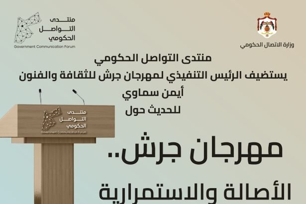 يعقد أمين عام وزارة الاتصال الحكومي الدكتور زيد النوايسة والرئيس التنفيذي لمهرجان جرش للثقافة والفنون أيمن سماوي لقاء مع ممثلي وسائل الإعلام بعنوان ” مهرجان جرش .. الأصالة والاستمرارية ” عند الساعة الواحدة من ظهر يوم غد الثلاثاء.
