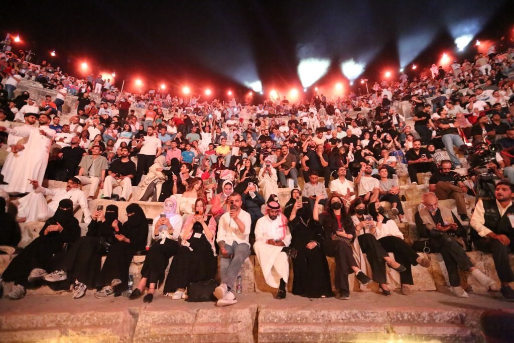 احتشد جمهور كبير في المسرح الجنوبي بانتظار المطربة أحلام التي سبقت حضورها بتحية للأردن ووعدت بتقديم ليلة استثنائية، وقالت “جئت من دار زايد الى بلد النشامى”.