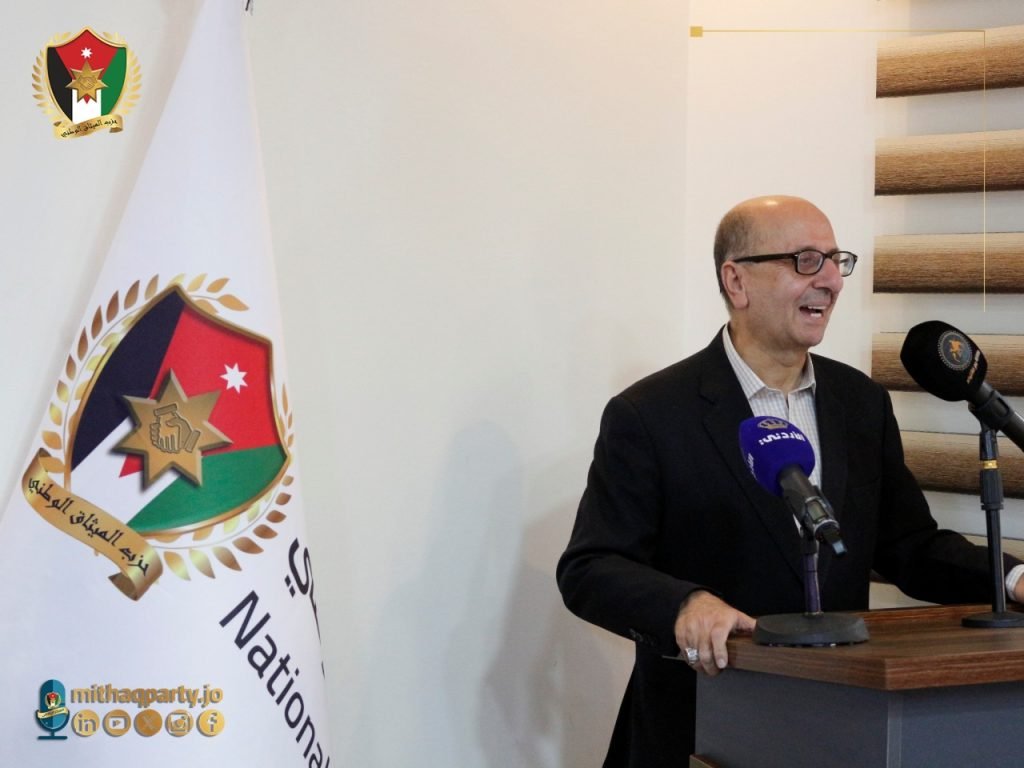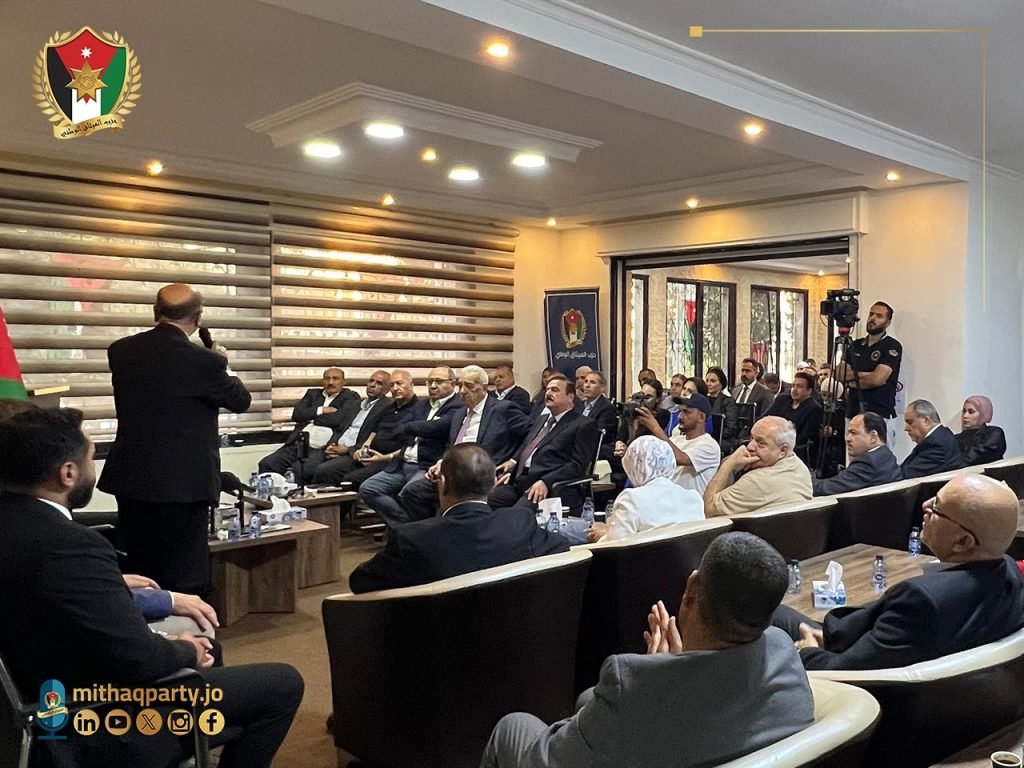 نظم حزب الميثاق الوطني ندوة حوارية سياسية بعنوان “تداعيات الإقليم وانعكاساته على الأردن”، قدّمها وزير الدولة لشؤون الاعلام الاسبق رئيس مجلس إدارة صحيفة الرأي سميح المعايطة، بحضور رئيس وأعضاء المجلس المركزي، وأمين عام الحزب المكلف وأعضاء من المكتب السياسي، ورئيس كتلة الميثاق النيابية وعدد من الأعيان والنواب وشخصيات سياسية معنية بالشأن العام، إلى جانب عدد من المهتمين بالشأنين السياسي والحزبي، وشباب الحزب.