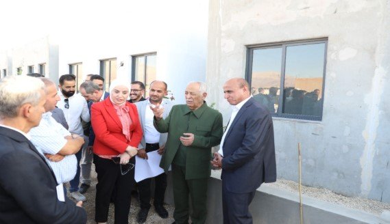 وجال العيسوي، بحضور الوزيرة بني مصطفى، والمحافظ الشريف والمعايطة في المشروع، الذي ينفذ على نظام الأبنية الجاهزة باستخدام الخرسانة مسبقة الصب، حيث استمع إلى إيجاز فني حول مجريات العمل ومراحل الإنجاز.