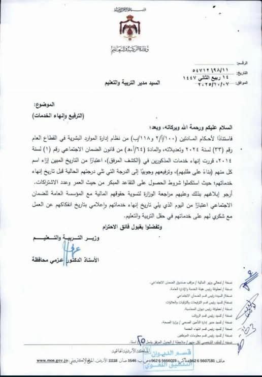 قررت وزارة التربية والتعليم إنهاء خدمات عدد من موظفيها الذين استكملوا شروط التقاعد المبكر، وفقاً لأحكام النظام، وذلك اعتباراً من التواريخ المحددة لكل منهم.