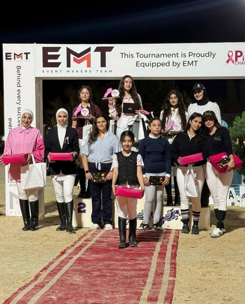 تألقت الفارسة ماريا أبو رقيه، البالغة من العمر 15 عامًا، بفوزها بالمركز الأول في بطولة «Pink Challenge» لفروسية السيدات، التي أُقيمت برعاية سمو الأميرة عالية بنت الحسين، رئيسة اتحاد الفروسية الملكي الأردني، ونظمها نادي الجواد العربي بالتعاون مع EMT Events Management على الميدان الخارجي للنادي.